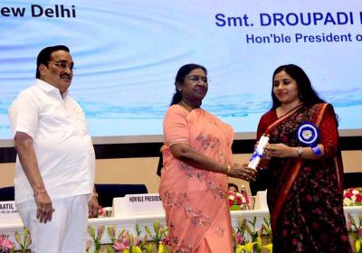 जल संचय के क्षेत्र में श्रेष्ठ पहल के लिए गुना नगरीय निकाय को राष्ट्रपति मुर्मू ने किया सम्मानित