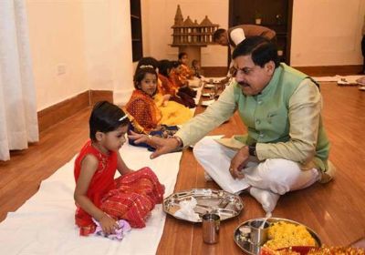 मुख्यमंत्री डॉ. यादव ने कन्याओं को तिलक लगाकर, चुन्नी ओढ़ाकर स्नेह पूर्वक कराया भोज