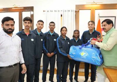 मुख्यमंत्री डॉ. यादव से मिले जर्मनी जाने वाले ग्राम विचारपुर के 5 फुटबॉल खिलाड़ी