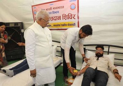 राज्यपाल पटेल ने रक्तदान और स्वास्थ्य शिविर का लिया जायज़ा