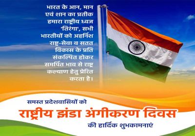 22 Jul, 2025 05:34 PM IST | SAMWADINDIA.INभोपाल मुख्यमंत्री डॉ. मोहन यादव ने प्रदेशवासियों को राष्ट्रीय झंडा अंगीकरण दिवस की शुभकामनाएं दीं है।...