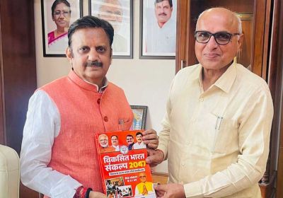 उप मुख्यमंत्री शुक्ल को सांसद डॉ. मिश्रा ने "विकसित भारत संकल्प-2047" पुस्तक भेंट की