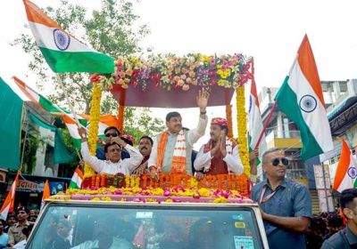 मुख्यमंत्री डॉ. यादव ने भारत माता की जय और वंदे मातरम के उद्घोष के साथ आम जनता पर की फूलों की वर्षा