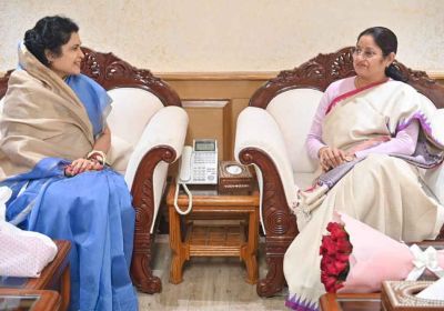 केन्द्रीय महिला एवं बाल विकास मंत्री श्रीमती अन्नपूर्णा देवी से राज्य मंत्री श्रीमती गौर ने की सौजन्य भेंट