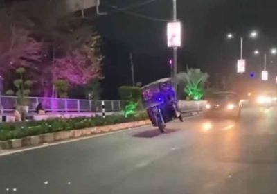 भोपाल में वीआईपी रोड पर स्टंटबाजी, दो पहिए पर चलाया ई रिक्शा