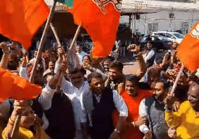 दिल्ली की जीत पर एमपी भाजपा में जश्न, कार्यकर्ताओं ने एक-दूसरे को मिठाई खिलाकर जीत की बधाई दी