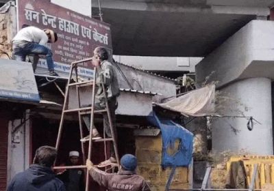 सुभाष नगर में पुलिस के दखल के बाद मोतीनगर बस्ती में दुकानदारों ने समान हटाना शुरू