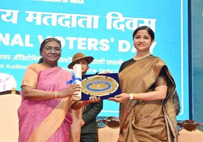 राष्ट्रपति श्रीमती मुर्मु ने स्वीप गतिविधियों के लिए झाबुआ कलेक्टर सुश्री नेहा मीणा को किया सम्मानित