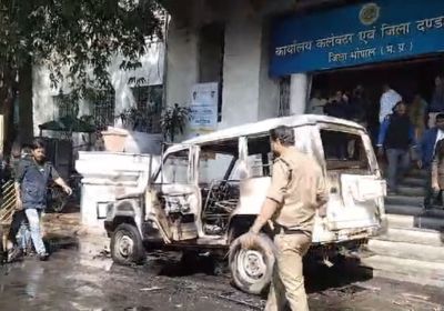 भोपाल कलेक्टोरेट किसान ने गाडी में लगाई आग, आग में झुलसने से बचा