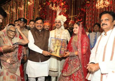 मुख्यमंत्री यादव मंत्री तोमर की बेटी के विवाह समारोह में शामिल होने ग्वालियर पहुंचे, वर-वधु को दिया आशीर्वाद