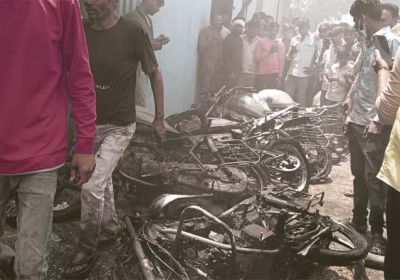 कृषि उपज मंडी गोदाम से धुआं निकलता देख लोग मौके पर पहुंचे, लगी भीषण आग, 100 क्विंटल सोयाबीन व 8 बाइक खाक