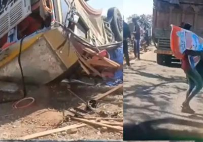 वाशिंग पाउडर और साबुन से भरा ट्रक अनियंत्रित होकर पलटा, लूटने के लिए दौड़ पड़े लोग