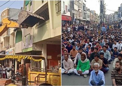 हरिफाटक ब्रिज से महाकाल मंदिर मार्ग के बीच प्रशासन ने कार्रवाई शुरू की, मुस्लिम समाज के लोग धरने पर बैठे