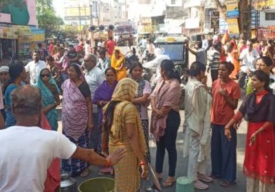 पानी के लिए प्रदर्शन, राजमार्ग पर दोनों ओर लगी वाहनों की लंबी कता, समझाइश के बाद बंद किया प्रदर्शन