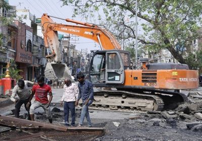 सड़क चौड़ीकरण के लिए पांच पोकलेन और चार जेसीबी के साथ 100 से ज्यादा श्रमिक मौके पर