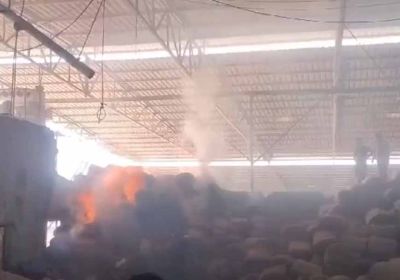 निजी गोदाम में लगी भीषण आग, लाखों का नुकसान