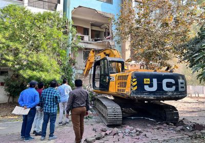 इंदौर में निगम अमले ने पहले तीन मंजिला बिल्डिंग पर बनाए पेंटा हाउस को तोड़ा, फिर तल मंजिल पर किए गए अवैध निर्माण को हटाया