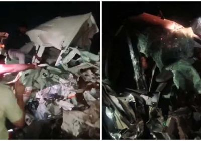 रांग साइड से आ रहे टैंकर ने दो वाहनों को मारी टक्कर, हादसा इतना जोरदार था की कार चकनाचूर हो गई, 7 लोगों की मौत