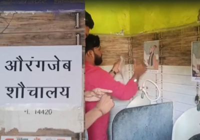 धार में पब्लिक टॉयलेट पर लगे 'ये औरंगजेब शौचालय है ' का पोस्टर, 'छावा' फिल्म देखने के बाद युवाओं का अनोखा विरोध