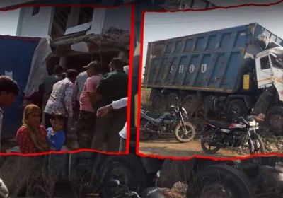 डंपर स्टेयरिंग फेल होने के बाद अनियंत्रित होकर एक मकान में घुसा और पलट गया, हादसे में किसी भी प्रकार की जनहानि नहीं