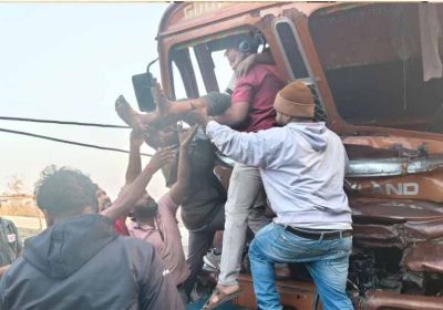तीन घंटे तक फंसा रहा, धार में ट्रक ड्राइवर ने कंटेनर को मारी टक्कर