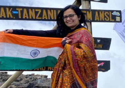 इंदौर की बेटी आंकाक्षा ने 19,000 फीट ऊंची किलिमंजारो चोटी पर चढ़ाई, साड़ी पहन तिरंगा फहराया