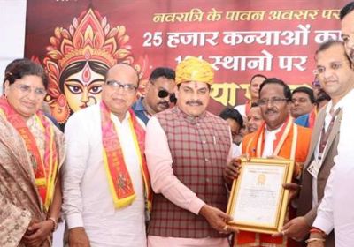 29 Sep, 2025 11:06 AM IST | SAMWADINDIA.INउज्जैन में 121 स्थलों पर हुआ 25 हजार से अधिक कन्याओं का पूजन ‘गोल्डन बुक आफ...