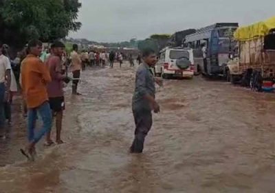 इंदौर-इच्छापुर हाईवे पर बाढ़ का असर, वाहनों की लंबी कतारें, 2 घंटे जाम
