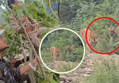 जंगल में नजदीकी मुकाबला: बाघ के सामने फॉरेस्ट गार्ड ने दिखाई दमदार सूझबूझ