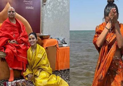 अभिनेत्री ईशा गुप्ता ने संगम में लगाई डुबकी