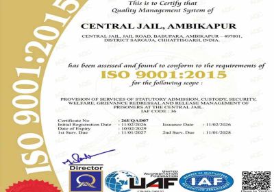 छत्तीसगढ़ की 4 सेंट्रल जेलों को मिला आईएसओ गुणवत्ता प्रमाणन