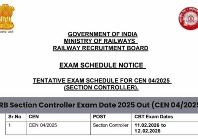 25 Dec, 2025 10:21 AM IST | SAMWADINDIA.INनई दिल्ली रेलवे भर्ती बोर्ड ने सेक्शन कंट्रोलर भर्ती परीक्षा की तिथि घोषित कर दी है।...