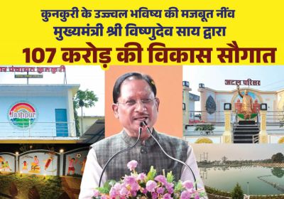 कुनकुरी नगर के विकास को नई रफ्तार: मुख्यमंत्री विष्णुदेव साय ने 107 करोड़ 32 लाख रुपये के कार्यों की दी मंजूरी