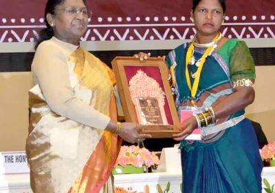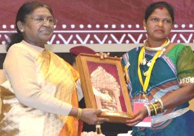 रायपुर में राष्ट्रपति द्रौपदी मुर्मु ने हीराबाई झरेका बघेल को राष्ट्रीय हस्तशिल्प सम्मान प्रदान किया