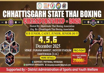 2 Dec, 2025 01:43 PM IST | SAMWADINDIA.INछत्तीसगढ़ दंतेवाड़ा में 5_6 दिसंबर को थाई बॉक्सिंग का आगाज़ :जिला प्रशासन कार्यक्रम को सफल...
