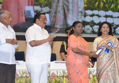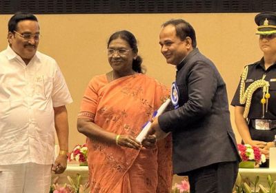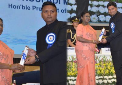 18 Nov, 2025 08:38 PM IST | SAMWADINDIA.INराष्ट्रपति श्रीमती द्रौपदी मुर्मू के हाथों कलेक्टर श्री विनय कुमार लंगेह ने पुरस्कार ग्रहण किया मुख्यमंत्री...