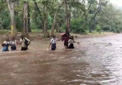 स्कूली बच्ची को बारिश में नदी पार से सुरक्षित निकाला