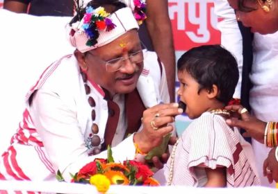 मुख्यमंत्री साय का आत्मीय और वात्सल्यपूर्ण व्यवहार : नन्ही बच्ची भूमिका बघेल को दुलारते हुए खिलाया महुआ लड्डू