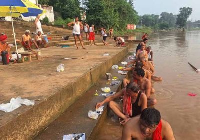 पितृपक्ष में आस्था चरम पर: कन्हर नदी और महामाया मंदिर घाट पर श्रद्धालुओं की भारी भीड़