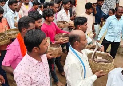 28 Aug, 2025 06:27 PM IST | SAMWADINDIA.INराजिम ऋषि पंचमी पर गरियाबंद जिले के देवरी गांव में जहरीले सांपों की शोभयात्रा निकाली गई,...