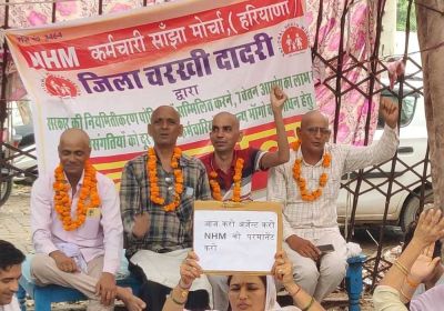 सरकार पर वादा खिलाफी का आरोप, NHM कर्मचारियों ने सिर मुंडवाकर जताया आक्रोश