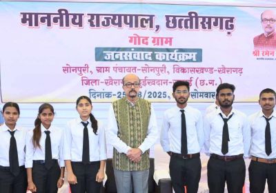 26 Aug, 2025 02:32 PM IST | SAMWADINDIA.INरायपुर राज्यपाल रमेन डेका ने अपने खैरागढ़ प्रवास के दौरान अपने गोद लिए हुए ग्राम सोनपूरी...