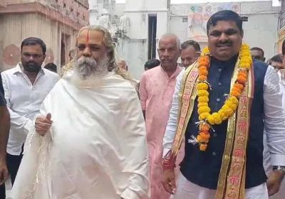 कार्यभार संभालने से पहले शिक्षा मंत्री गजेंद्र यादव ने की पूजा, राम सुंदर दास से लिया आशीर्वाद