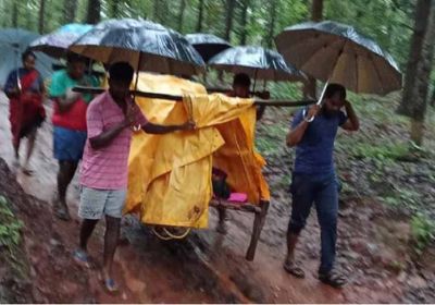 कोरबा में स्वास्थ्य सुविधाओं की हालत खराब, मरीज को तिरपाल से ढक, खाट पर लिटा 7 किमी पैदल चले परिजन