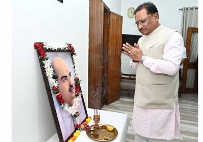मुख्यमंत्री साय ने अपने निवास कार्यालय में डॉ. मुखर्जी के छायाचित्र पर पुष्पांजलि अर्पित कर दी श्रद्धांजलि