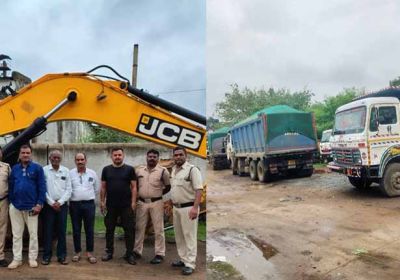 अवैध रेत खनन में लगी मशीन और 7 हाईवा खनिज विभाग ने किए जब्त