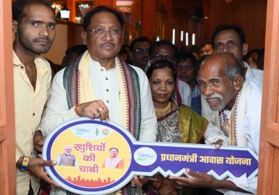 रायपुर : मुख्यमंत्री ने दोकड़ा में पीएम आवास योजना के हितग्राही संतु चक्रेस को चाबी देकर गृह प्रवेश कराया