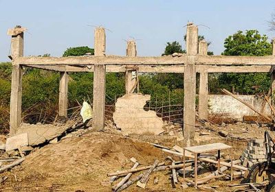घटिया निर्माण सामग्री से निर्माणाधीन श्मशान घाट का शेड हुआ धराशायी