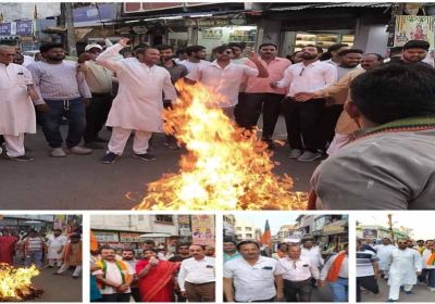 मनेन्द्रगढ़ में कांग्रेस नेताओं का पुतला दहन, ईडी की चार्जशीट के बाद भाजपा युवा मोर्चा का प्रदर्शन