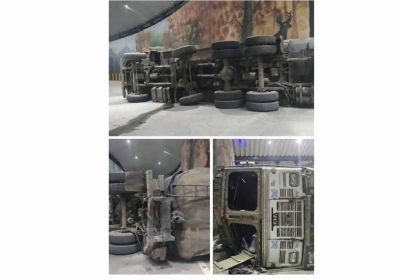 सुपेला से सेक्टर की ओर जा रहा ट्रक अंडरब्रिज में पलटा, चालक घायल